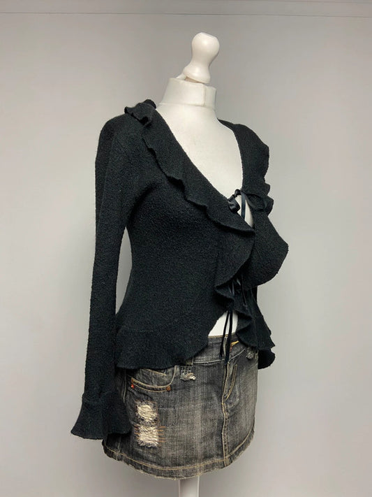 Vintage 00s Tie Ruffled Cardigan - One Size