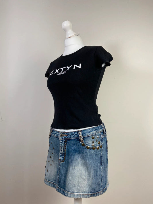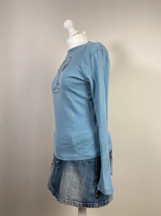 Save The Queen Embellished T-Shirt With Cup Sleeves - Size M/L