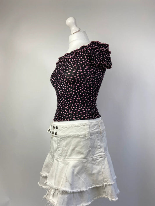 90s Floral Off the Shoulder Baby Tee- Size XS/S