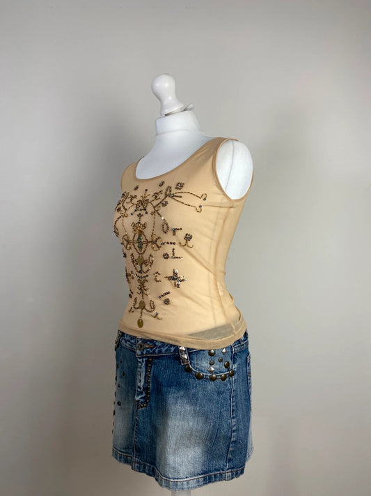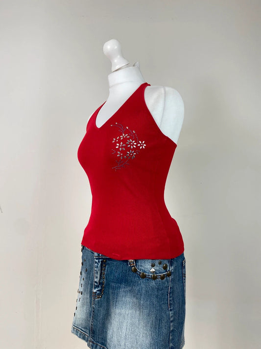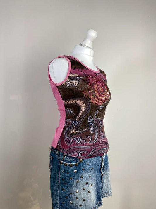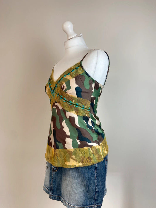 Vintage 90s Y2K Cami Top With Tie Waist - Size M