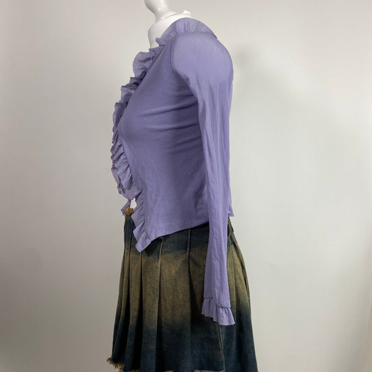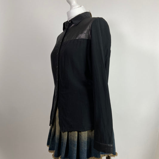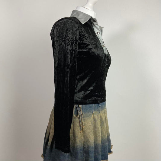 Y2k Velvet Long Sleeve Collared Top - Size S