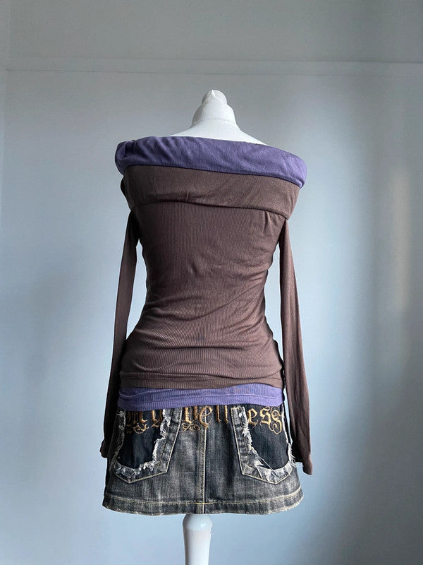 Brown and purple Cop Copine long sleeve top. Neck can be worn off shoulder or slouched. Taille 1 on tags which is a small. Will fits sizes UK 8 to 10.