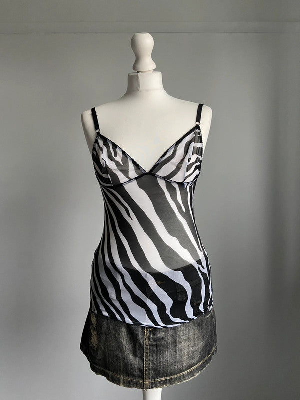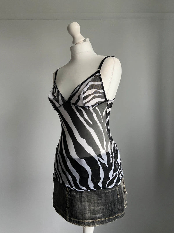 Vintage Dolce & Gabbana zebra print sheer mesh cami top with adjustable straps. Size M on tags, will fits sizes UK 8 to 12 as it’s stretchy.