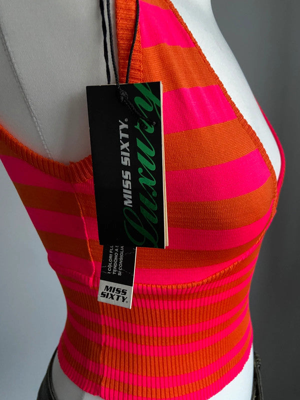 miss sixty striped cinched top size M on tags but fits smaller. New deadstock with original tags on. Will fit sizes UK 6 to 10 as the material is stretchy