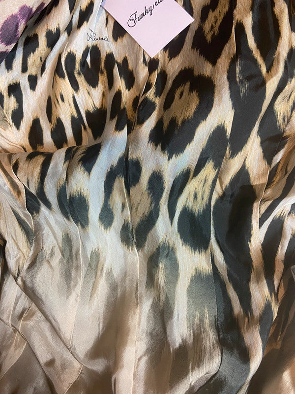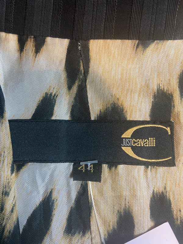 Roberto Cavalli ‘Just Cavalli’ pinstriped jacket, with a stunning leopard print silk lining. Italian size 44, which is a UK 12. Can fits sizes UK 8 to 12 depending on the fit you prefer. Great condition