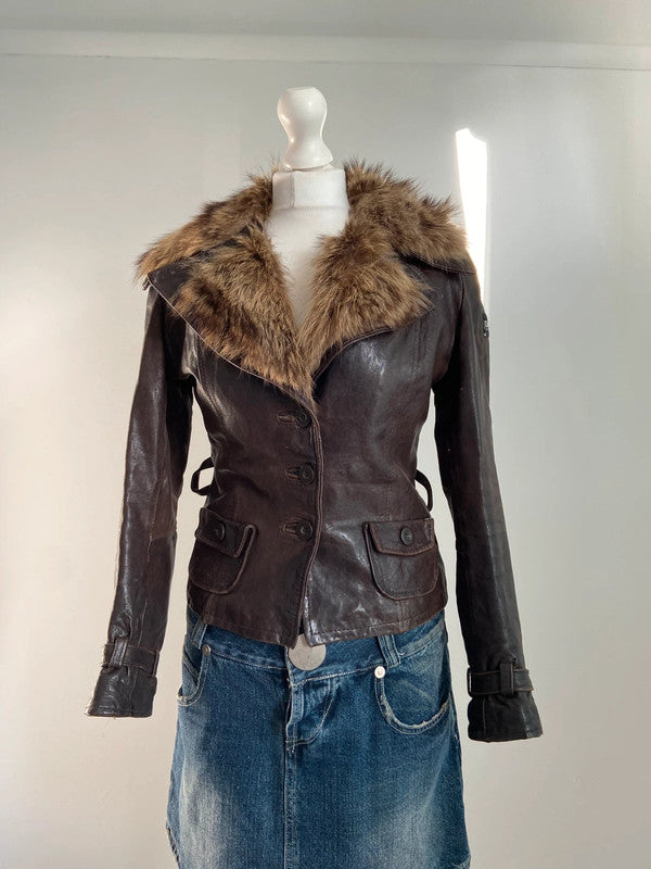 Vintage 00s Fur Trim Leather Jacket - Size S