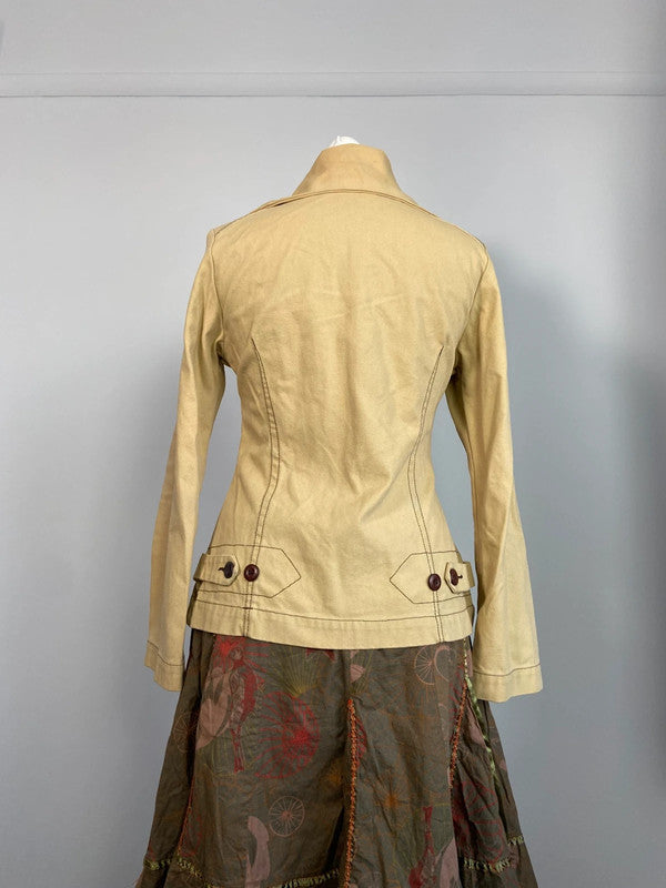 Beige zip up jacket. Collar can be zipped all the way up. Size S on tags. Good condition. Few small marks, which I will wash before sending.